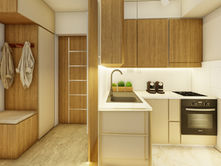 Во станот најпрво се влегува во хол кој води до дневната соба и трпезаријата. Кујната е мала, но рационално решена со сите неопходни функции. Од спалната се излегува на балкон кој го трансформиравме во мала зелена „оаза“ идеална за одмор и релаксација.